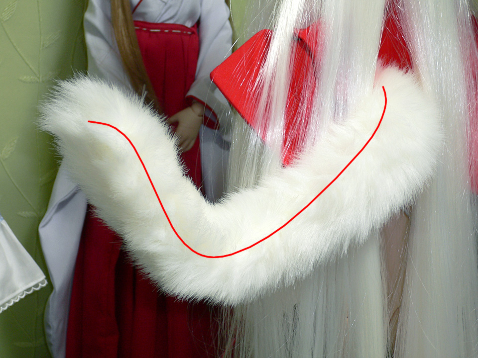 しっぽの先から付け根にかけてねじれているが、ファーで上手い具合に隠してやると案外目立たない。