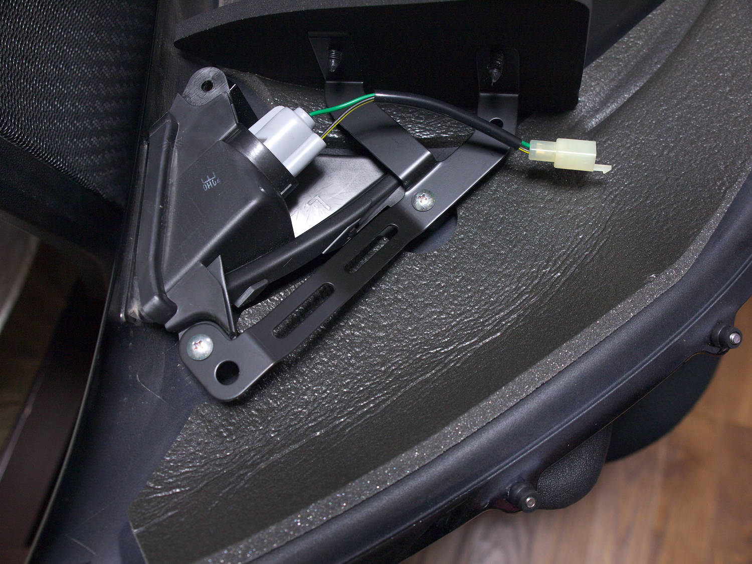 Hi側ヘッドライトハーネスの内側をくぐらせてから接続すると良い。