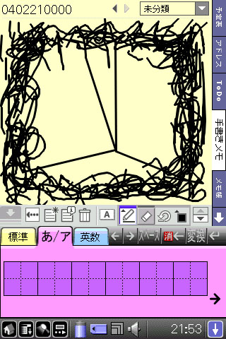 この中央に向かって突き進む線は意図した直線ではなく,タッチパネルの暴走の結果です.
