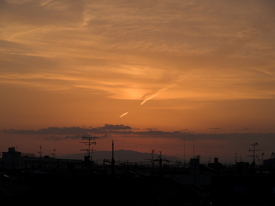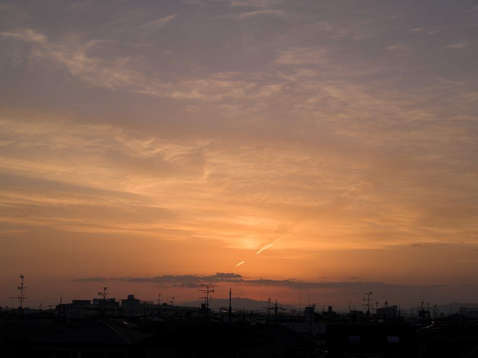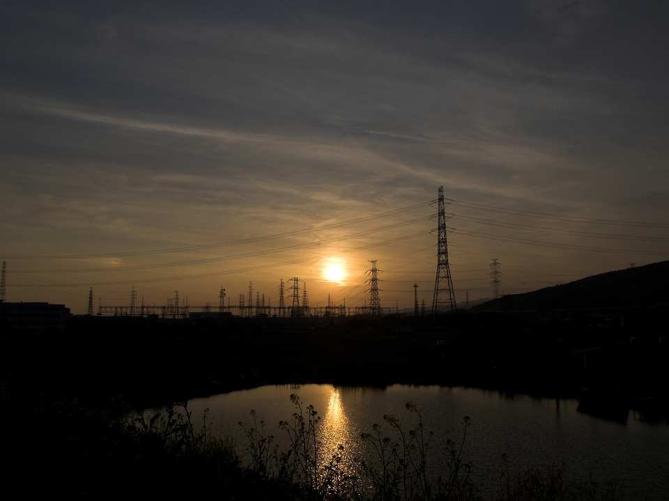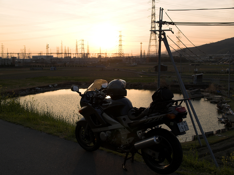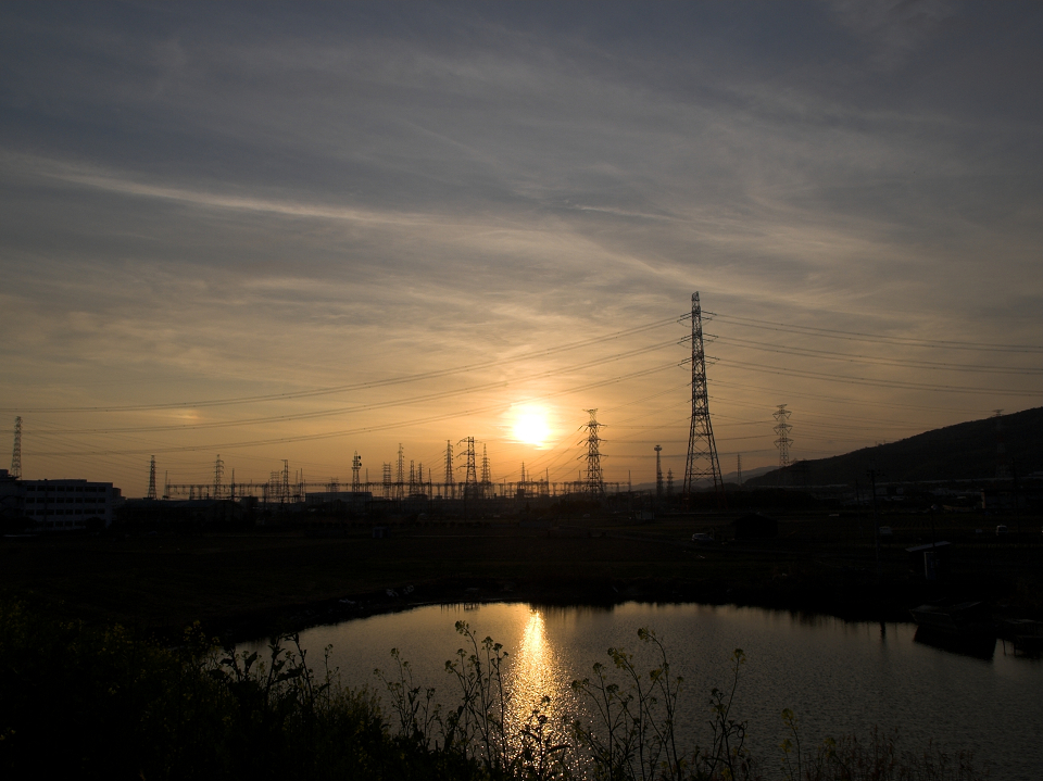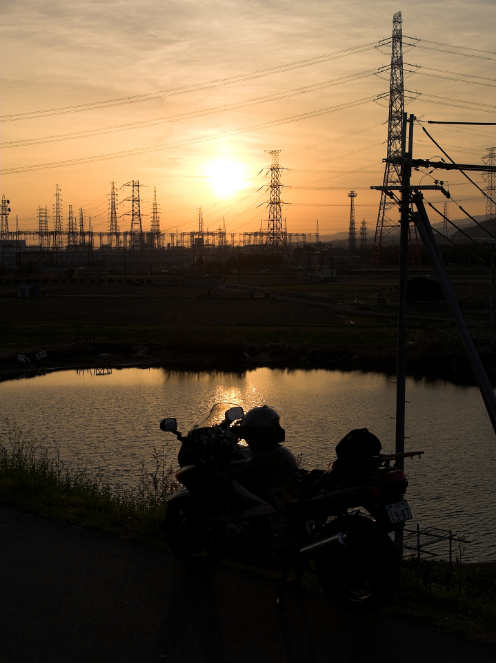 河川敷より夕日を望む