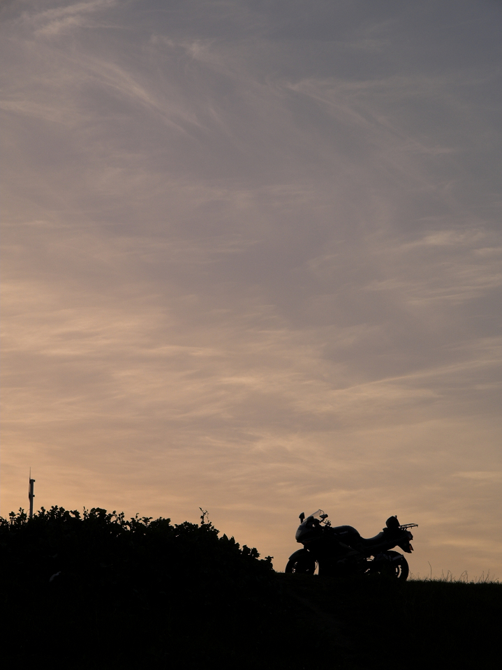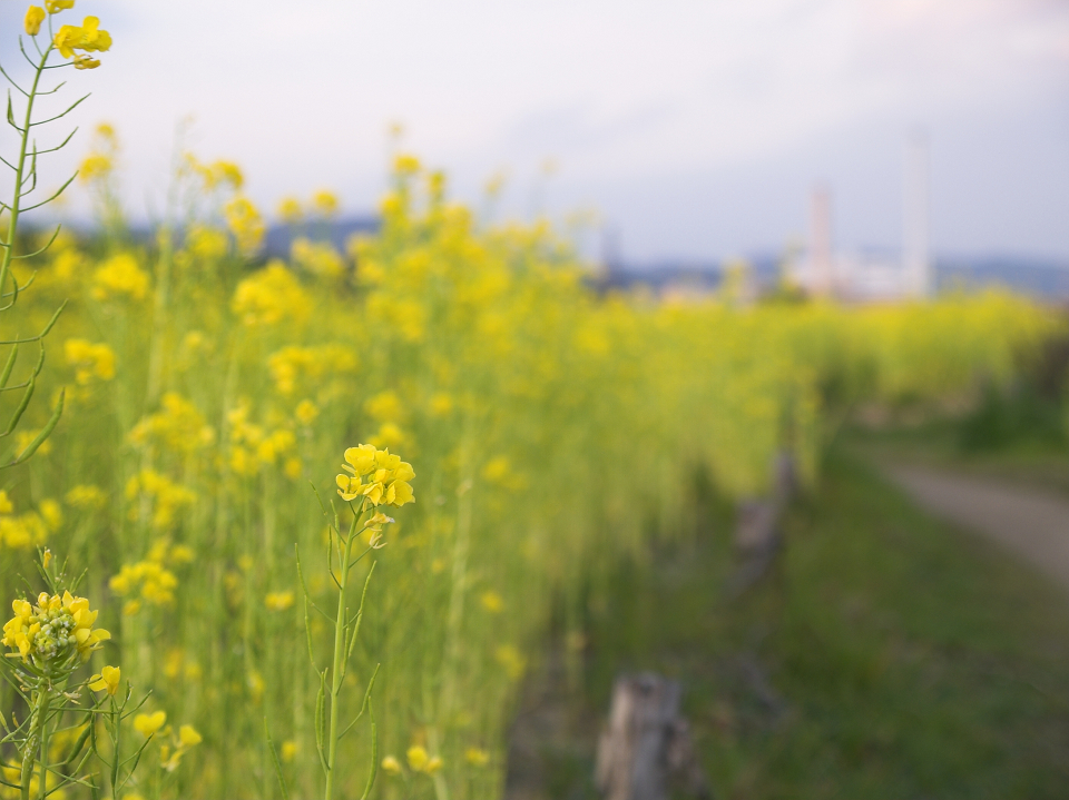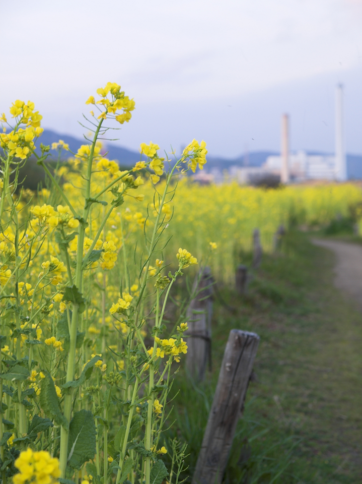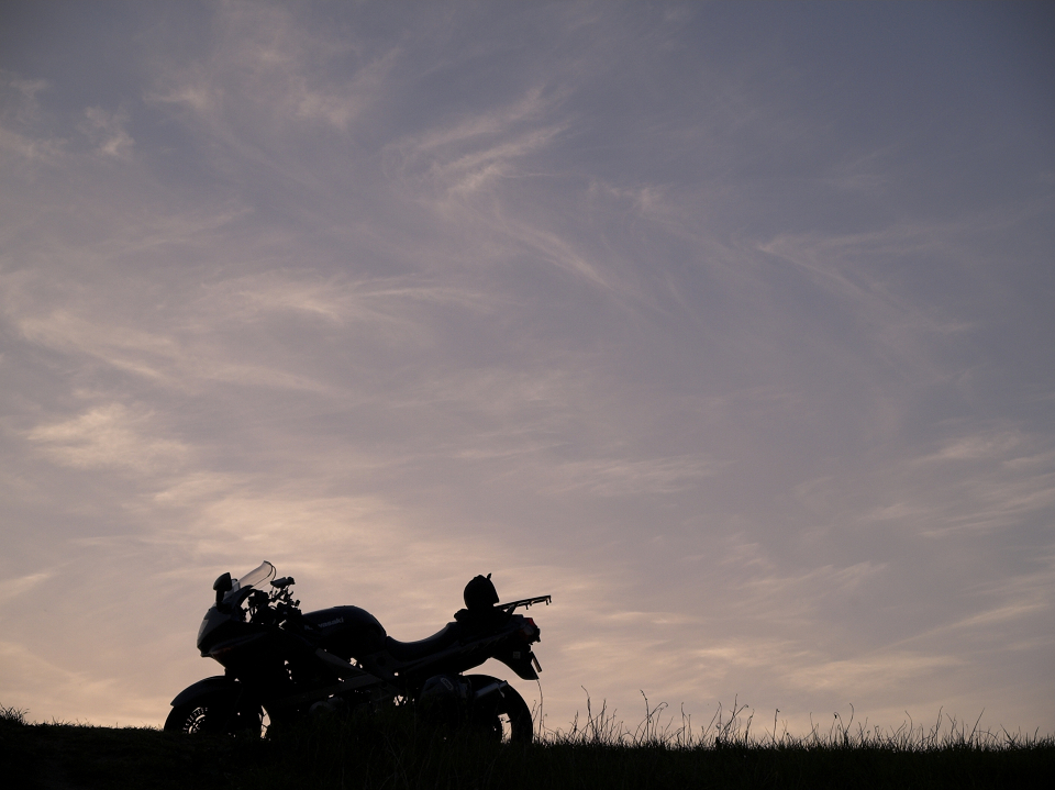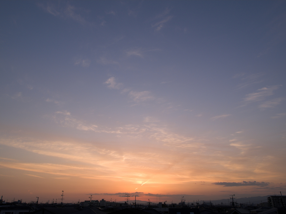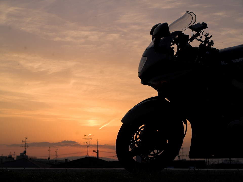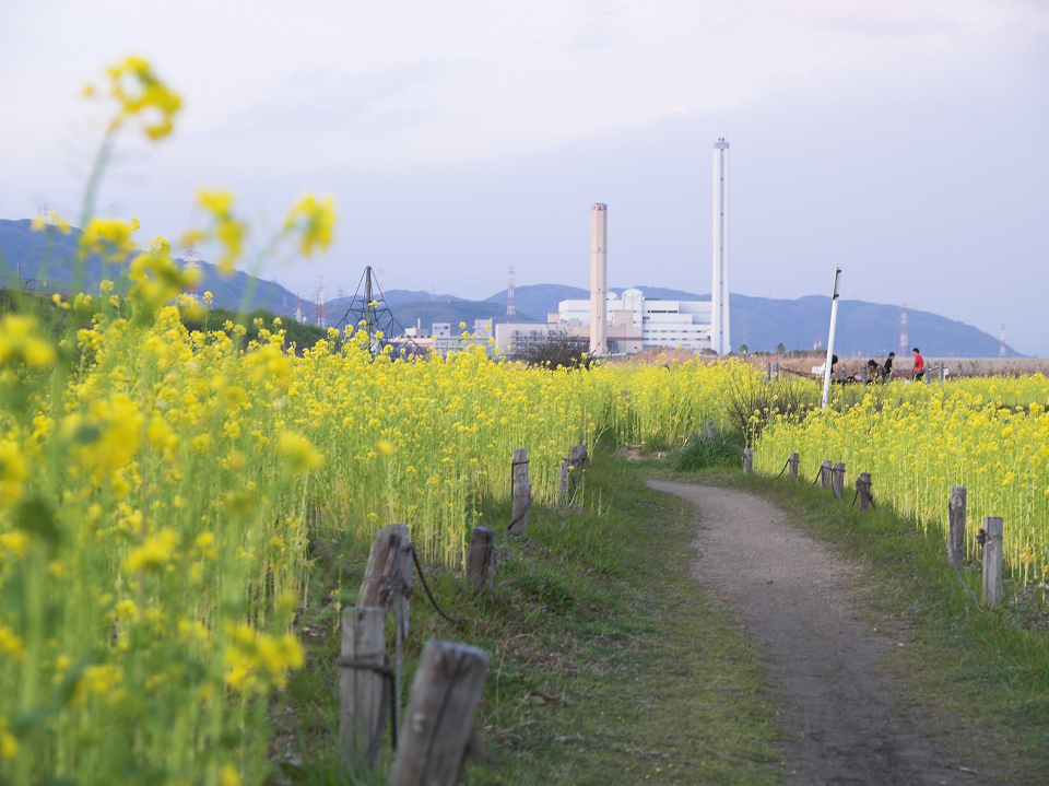 河川敷より夕日を望む